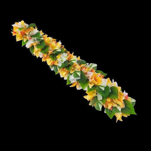 Composition : Fleurs, Fleuilles, bande de tissu, bolduc et scratch.