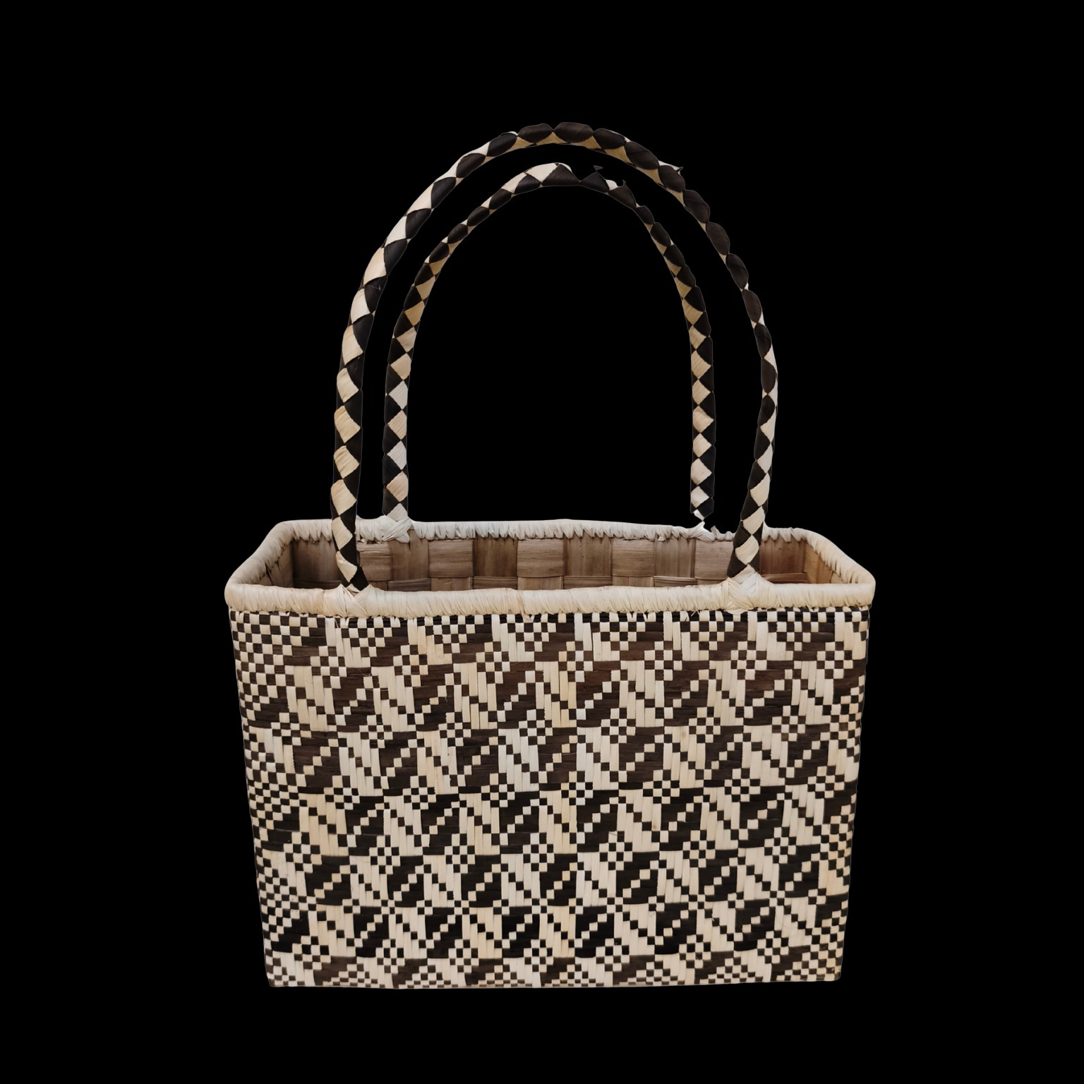 Description : Grand panier typiquement Polynésienne sans couvercle avec 2 anses, fabriquer artisanalement à la main.
