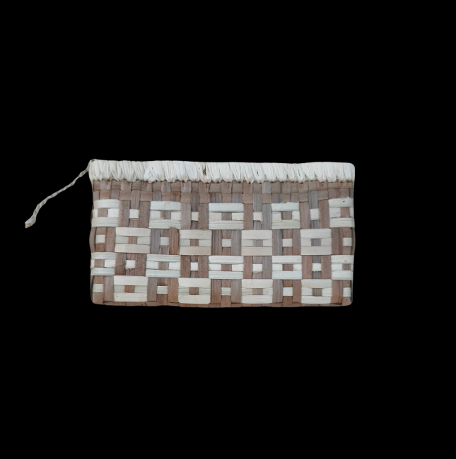 Description : Porte-monnaie tissé à la main, doté d'une fermeture à glissière avec double poche à l'intérieur.