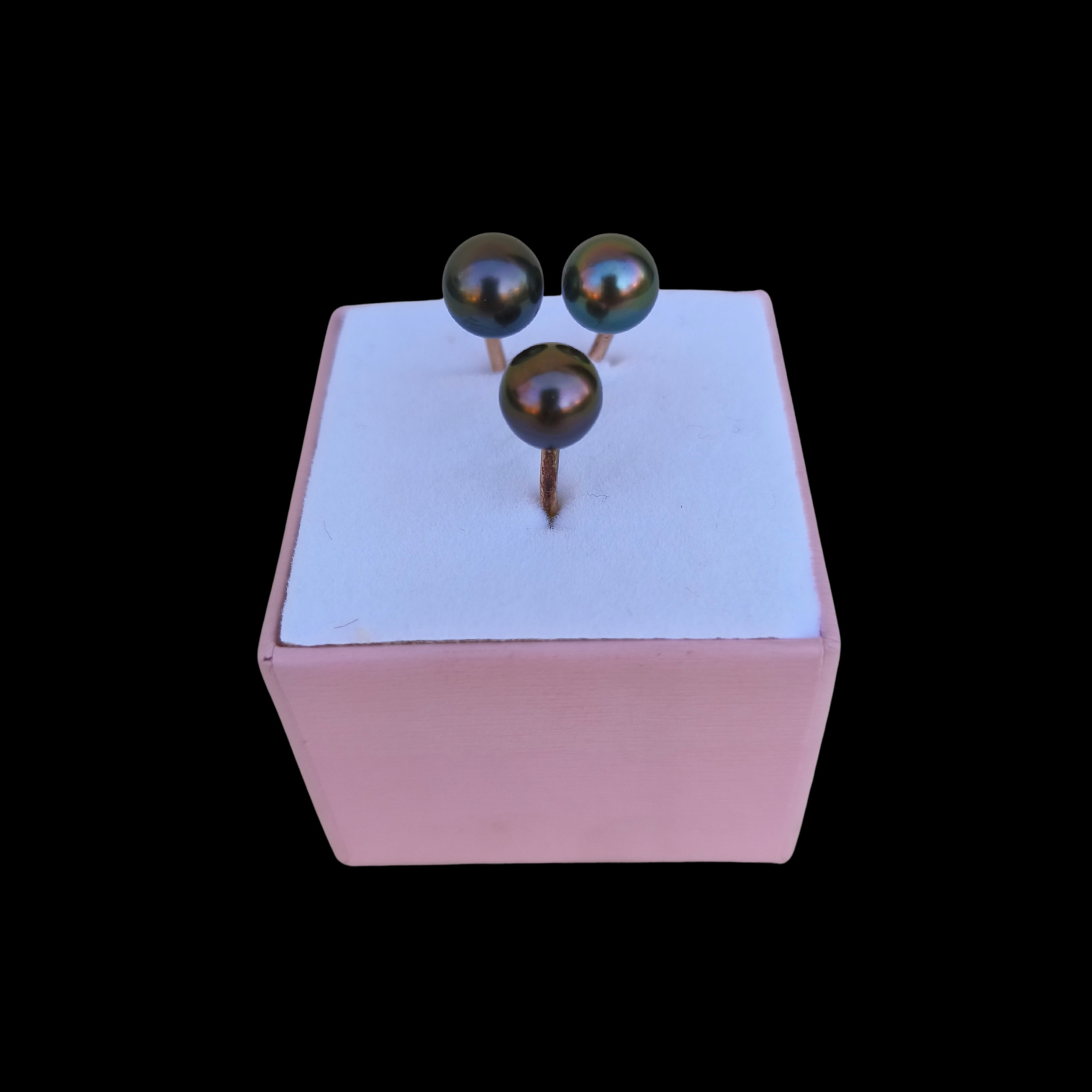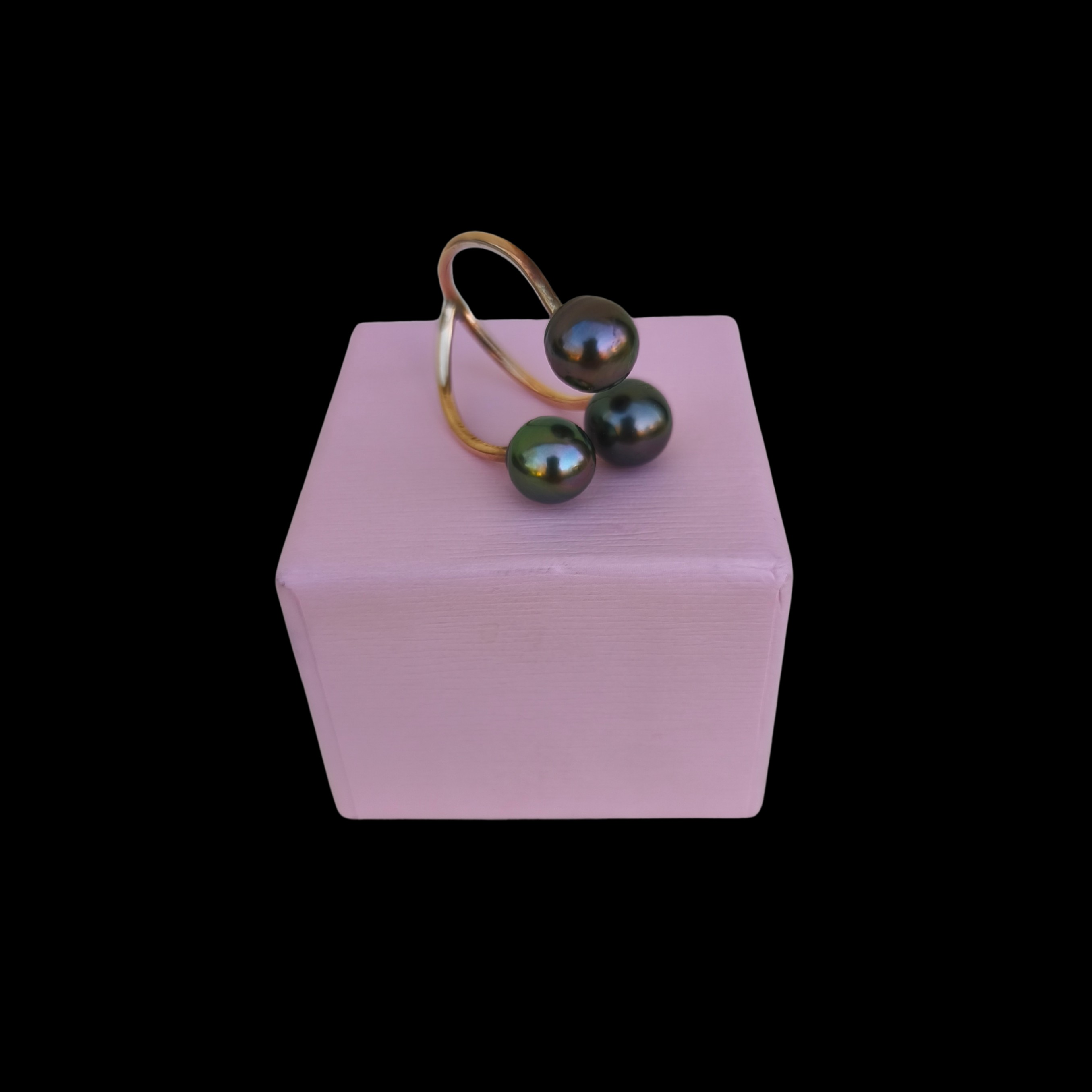 Description : Bague ajustable ornée de trois magniques perles de tahiti, anneau en acier inoxidable, fabriquer artisanalement par Hiva Perle, un bijou moderne qui met en valeur la beauté naturelle de vos doigts et ajoute une touche éclatante et raffin ée à votre style.